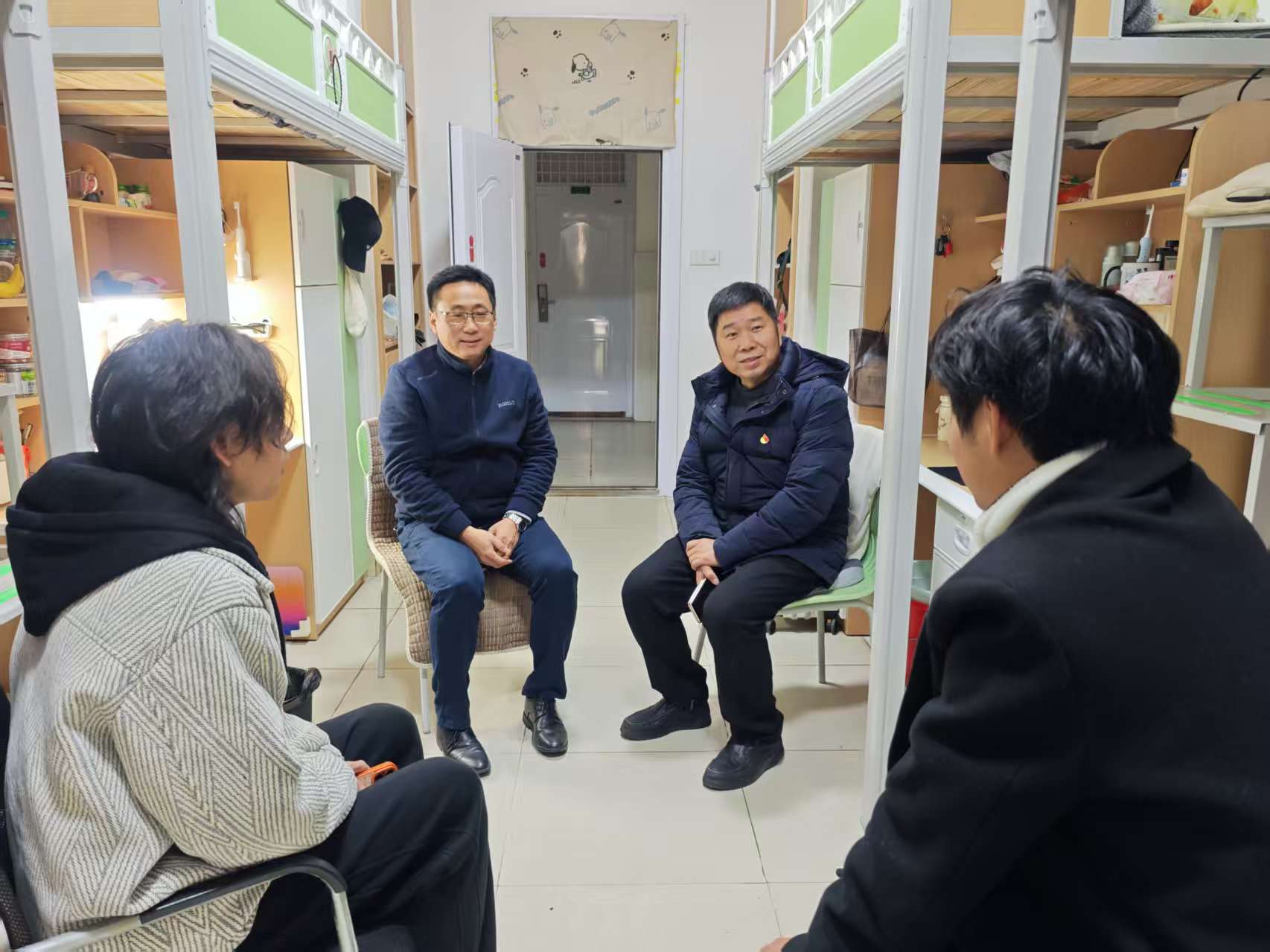随后,校领导深入学生宿舍,实地察看学生的生活环境和住宿条件,与同学们拉家常、聊学业、问需求、话未来。校领导关切地询问同学们在校学习生活是否适应、有无困难,并叮嘱大家要互帮互助,共同营造安全、文明、和谐、向上的宿舍氛围。鼓励同学们珍惜大学时光,夯实专业基础,拓展综合素质,加强身体锻炼,保持积极乐观的心态。