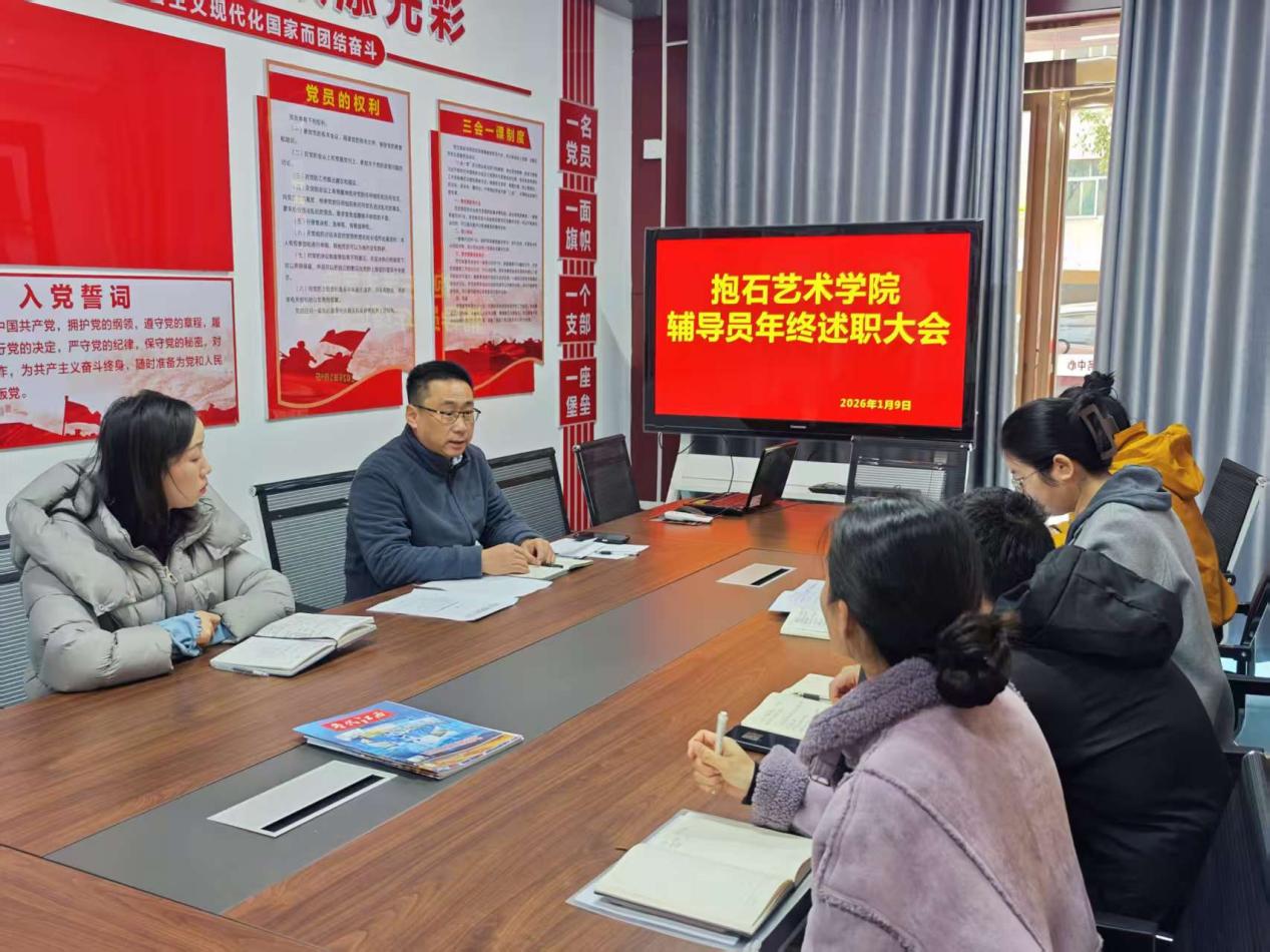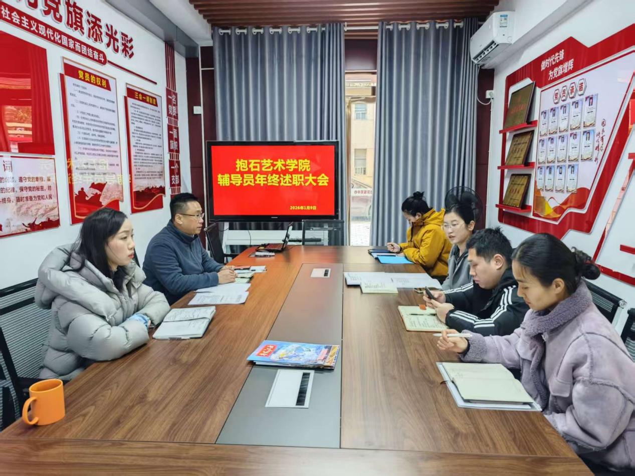 为全面总结本年度学生工作成效,进一步加强辅导员队伍建设,提升思政育人工作质量,抱石艺术学院于2026年1月9日上午9时,在9栋一站式党员活动室召开了2026年度辅导员年终述职评议大会。学院党总支书记刘永东、党总支副书记姬赛赛出席会议,全体专职辅导员参加了本次会议。
