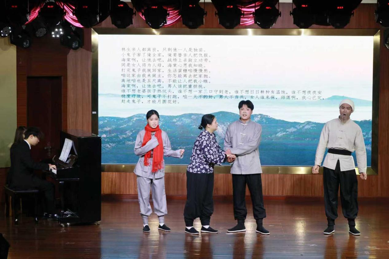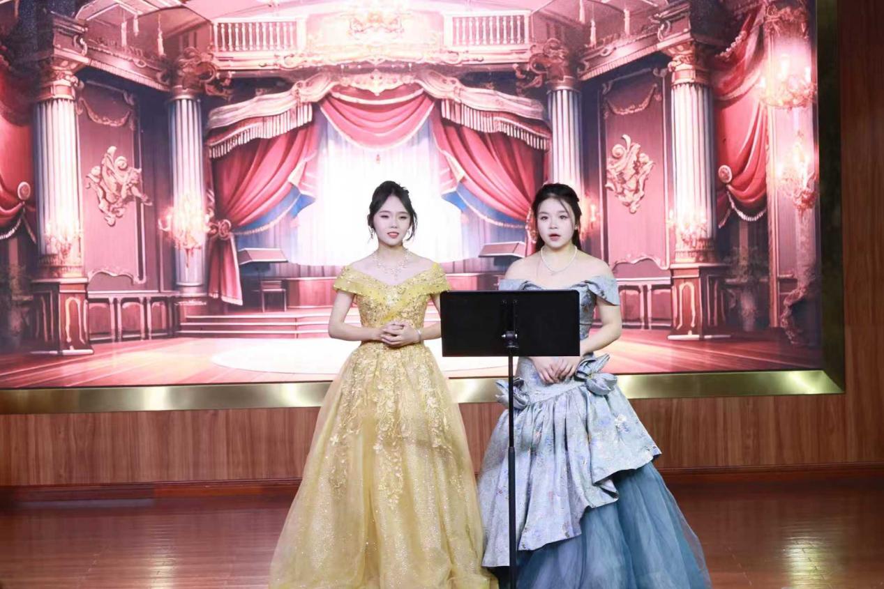 展演在武泰民、廖元霞两位指导老师保驾护航的上半场演出中拉开序幕。张子纯与陈星星带来的钢琴四手联弹《闲聊波尔卡》节奏明快,瞬间点燃现场气氛;万凌云、陈书晴搭档演绎的二重唱《微风吹拂》《花之二重唱》,在廖元霞的钢琴伴奏下,歌声婉转悠扬,尽显声乐魅力;歌剧《沂蒙山》选段联唱更是高潮迭起,黄如意、黄珍珍等六位演员凭借真挚的情感与扎实的功底,将《海棠啊让他去吧》等经典唱段演绎得淋漓尽致,传递出深厚的家国情怀。
