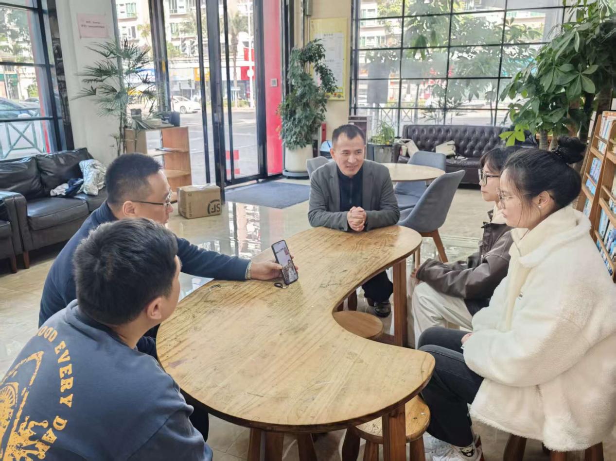 每到一处,调研团队都与用人单位负责人、一线管理人员及在岗校友进行深入座谈交流。刘永东书记详细介绍了抱石艺术学院的发展概况、办学特色、专业设置及2026届毕业生基本情况,重点阐述了学院“北斗星·红光”的内涵,即以党建引领方向,以红色文化、专业热忱赋能人才培养和艺术创作,培养德艺双馨的应用型艺术与教育人才。他强调,学院始终坚持立德树人根本任务,致力于培养符合社会需求、具备扎实专业技能和良好职业素养的毕业生,希望通过此次实地走访,更直接地了解市场动态和行业需求,反哺教育教学改革。