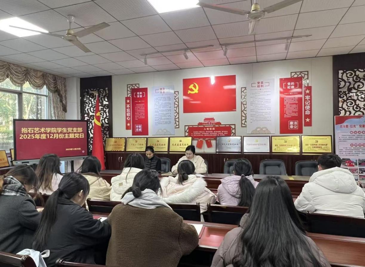 为深入学习党的最新理论成果和校党委的决策部署,强化党员意识,进一步增强学生党支部全体成员的政治素养和党性修养,抱石艺术学院学生党支部于2025年12月26日在艺术楼202举办12月主题党日活动。