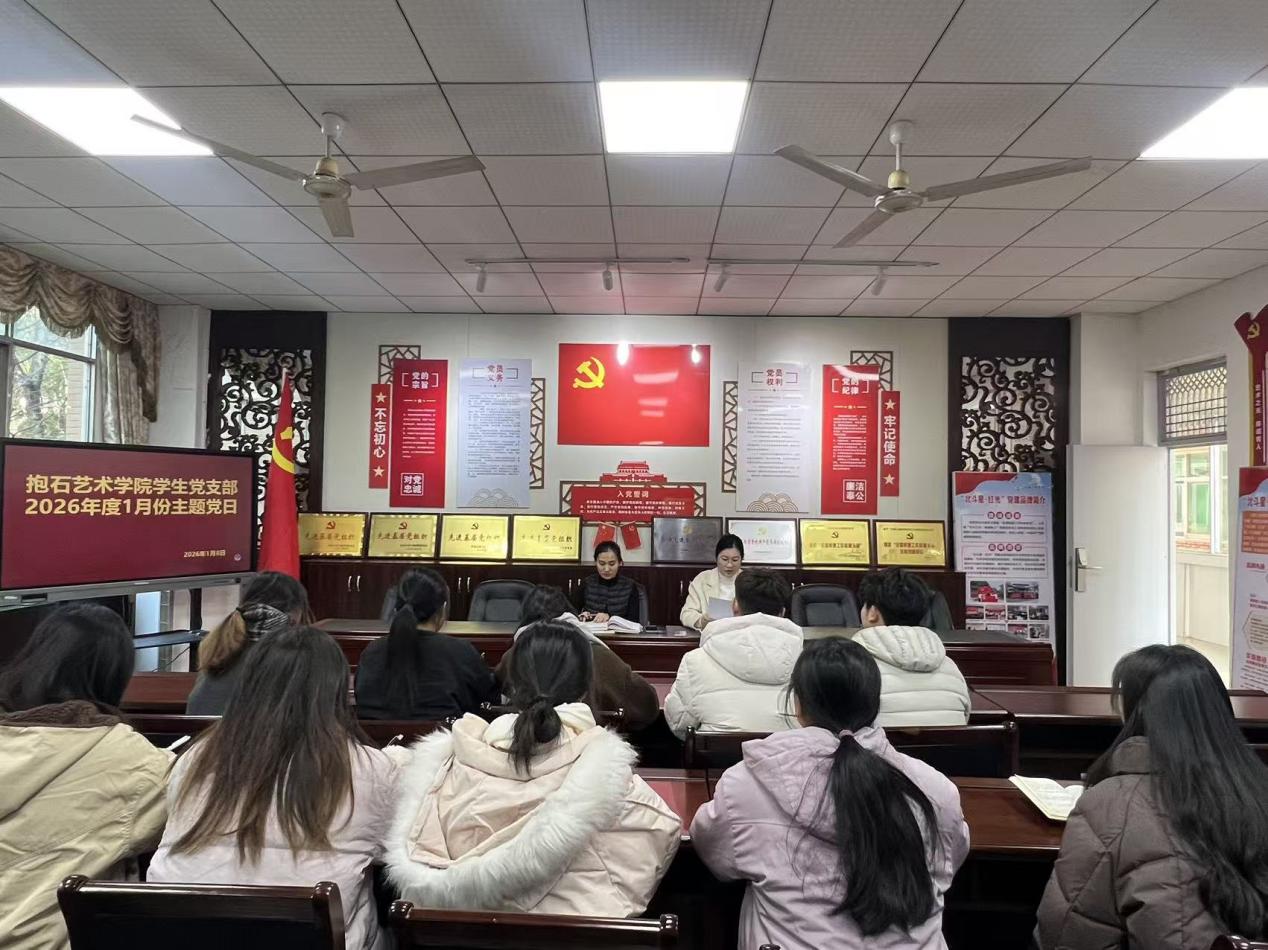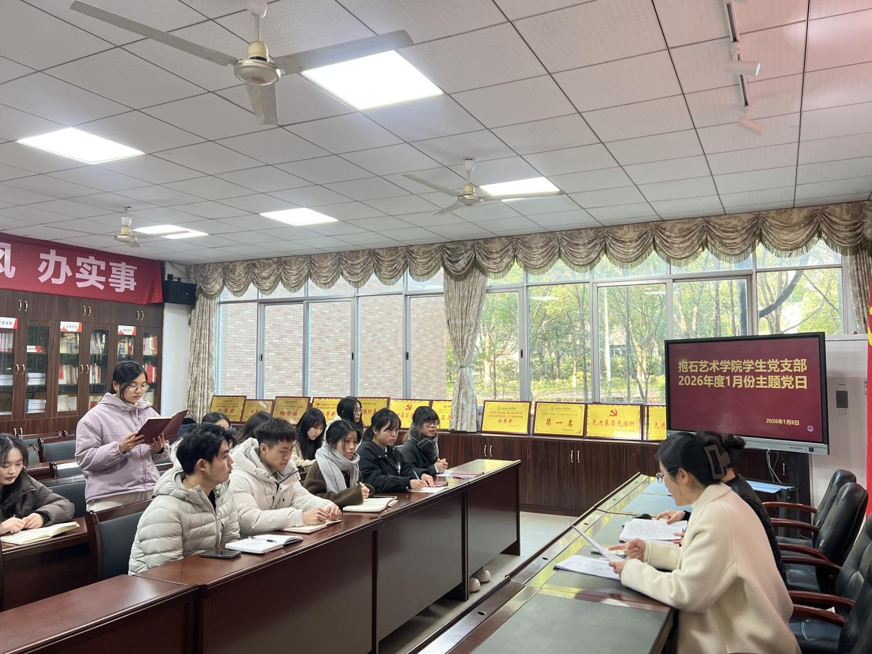 为进一步强化学生党支部成员的政治理论学习,提升党性修养,抱石艺术学院学生党支部于2026年1月8日在艺术楼202成功举办了1月主题党日活动。