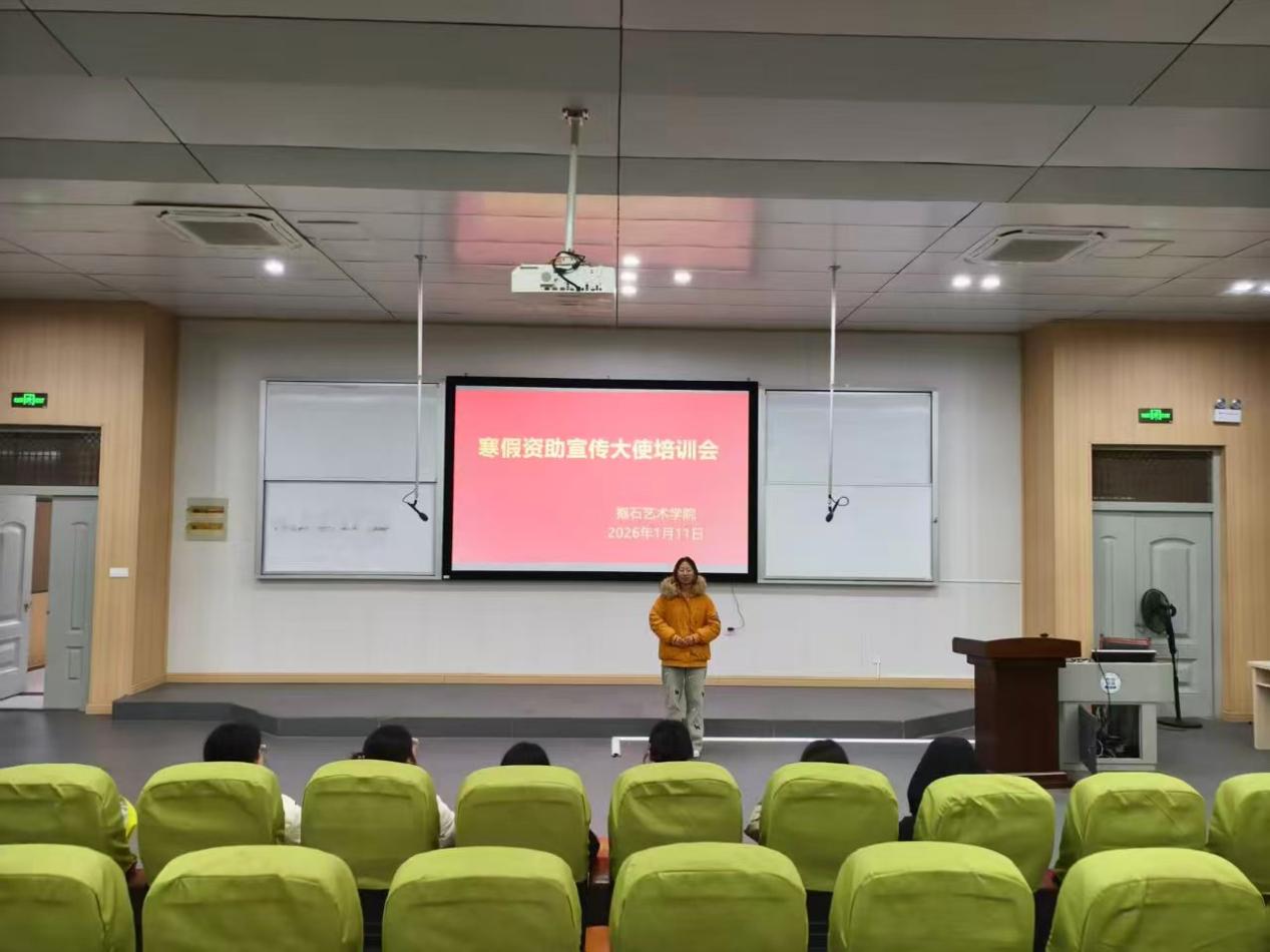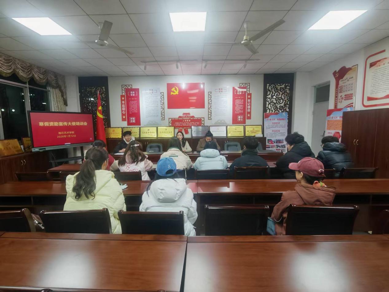 为切实做好学生资助政策宣传工作,充分发挥资助育人实效,抱石艺术学院于2026年1月11日晚7时,在艺术楼202会议室成功举办了寒假资助宣传大使专题培训会。学院党总支副书记姬赛赛、团总支书记答惠琳及经过选拔的资助宣传大使参加了本次培训。