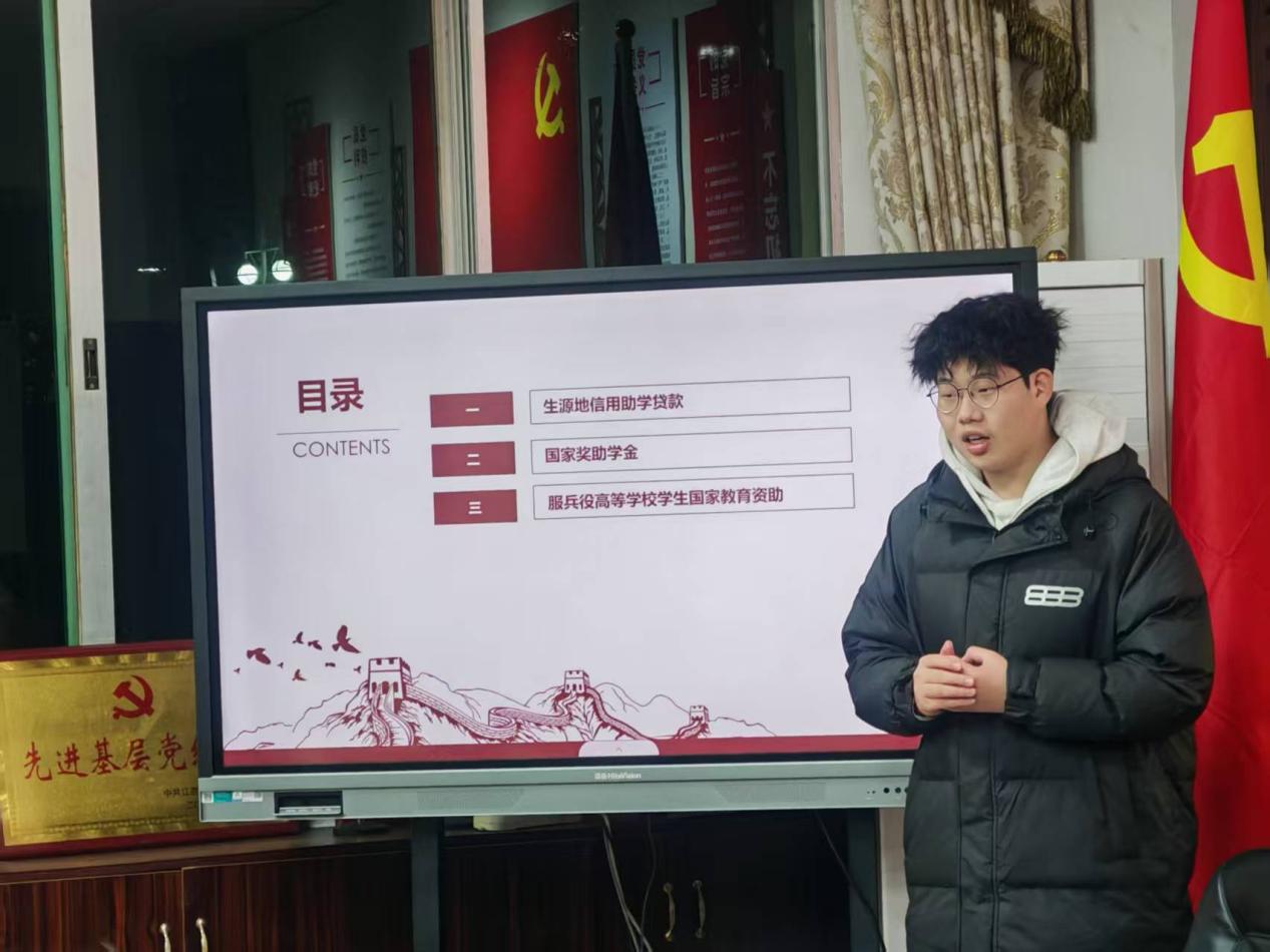 培训会上,姬赛赛首先强调了本次寒假资助宣传活动的目的与意义。她指出,资助宣传大使不仅是政策的传播者,更是学校关怀的传递者,肩负着消除信息壁垒、助力梦想起航的重要责任。随后,系统解读了国家及学校的各项学生资助政策,包括国家奖学金、国家励志奖学金、国家助学金、国家助学贷款、基层就业学费补偿贷款代偿等,并重点讲解了政策申请条件、办理流程和常见问题。培训内容翔实,条理清晰,确保每一位宣传大使都能准确掌握政策要点。