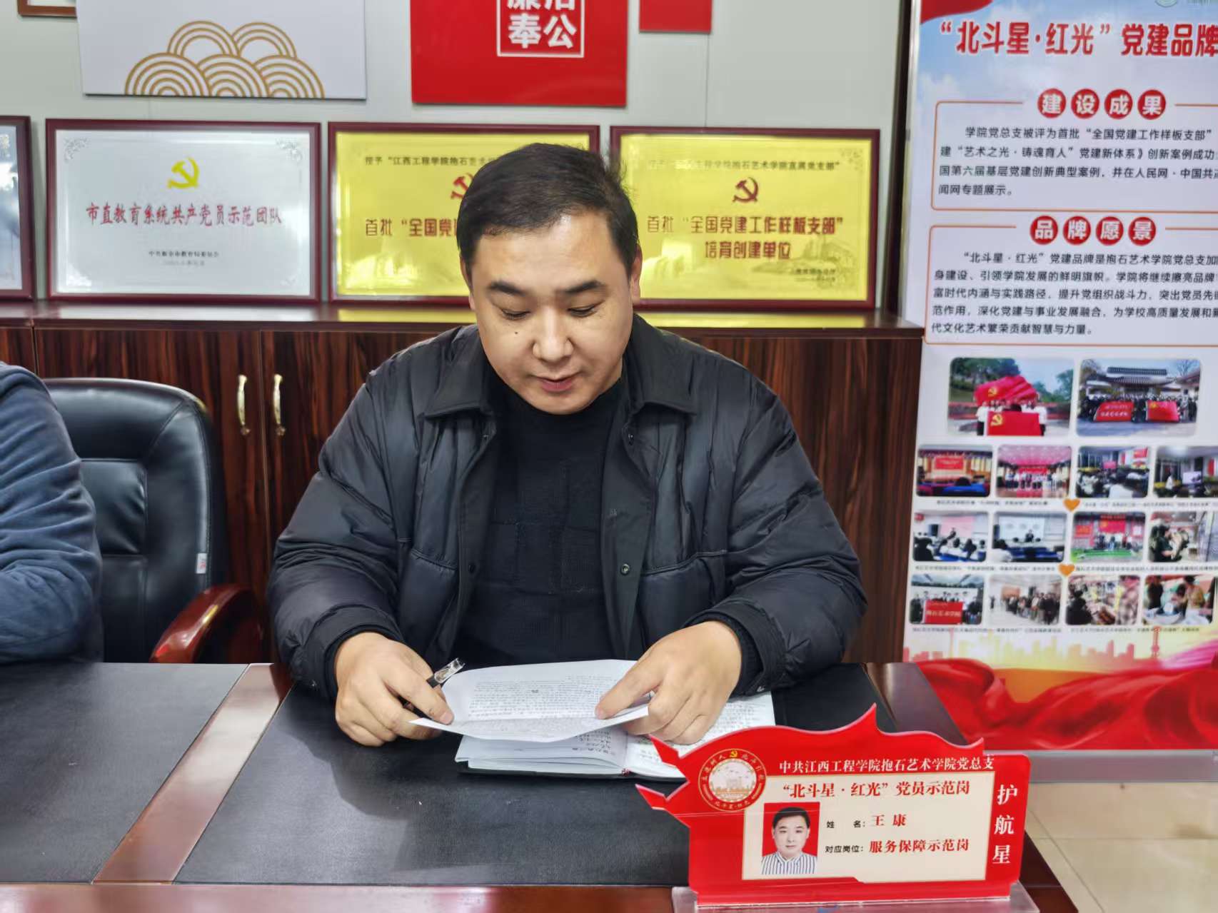 为深入推进党建引领工程,选树先进典型,激发党员活力,2026年1月14日下午,抱石艺术学院党总支在艺术楼202党员活动室隆重举行“北斗星·红光”党员示范岗授牌仪式。学院党政领导班子成员、各教研室主任、全体党员及全体教师齐聚一堂,共同见证这一庄严时刻。仪式由党总支副书记姬赛赛主持。