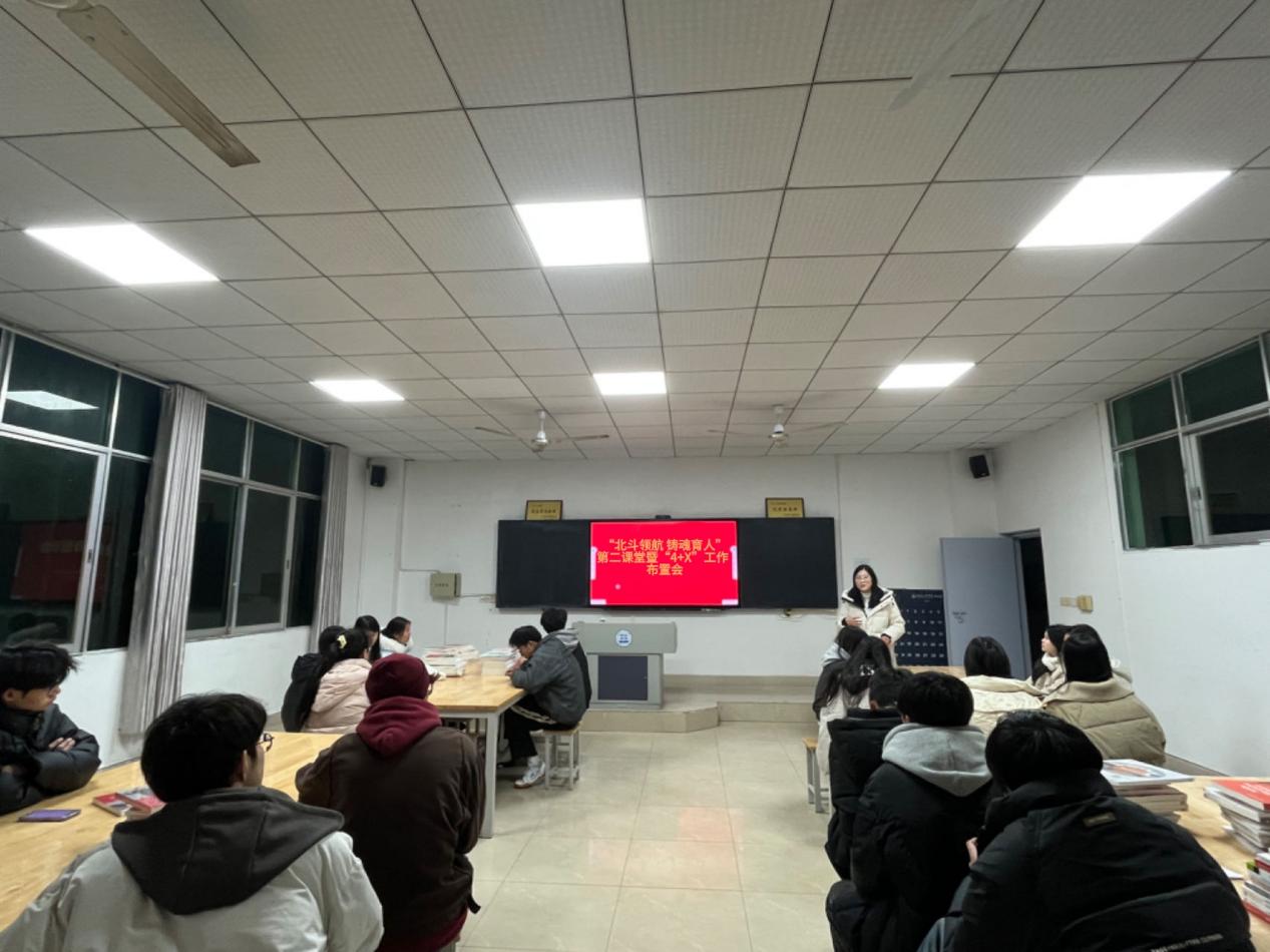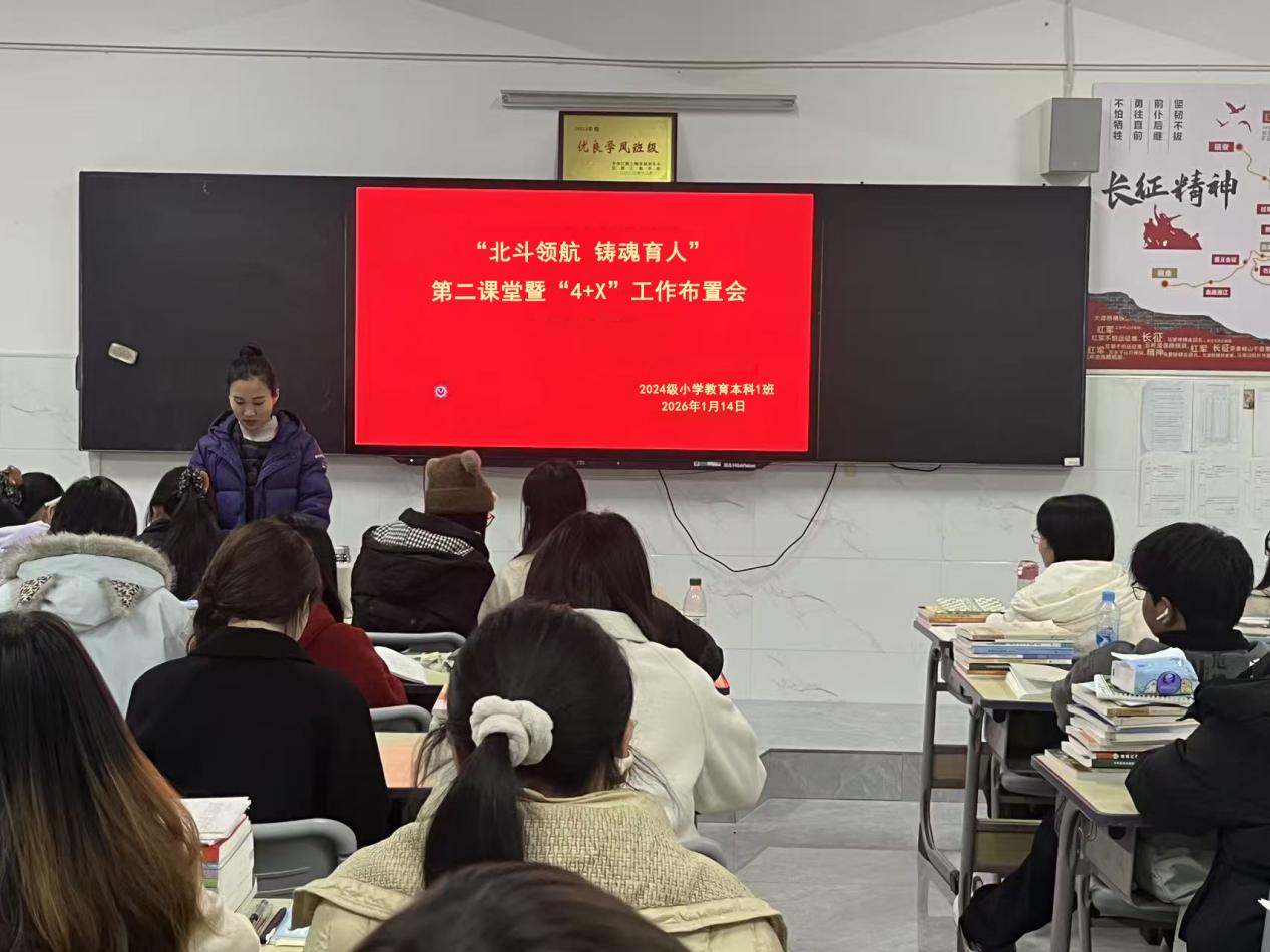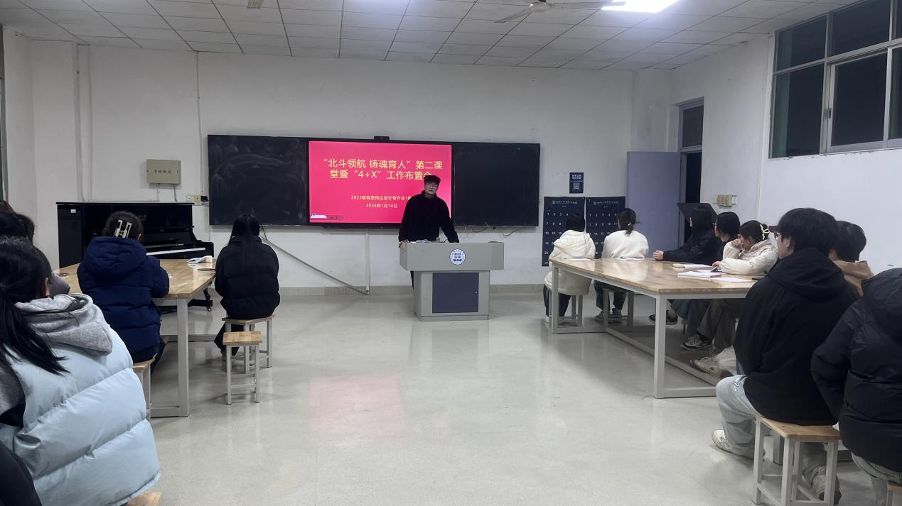 2026年1月14日,抱石艺术学院积极响应学校号召,组织全院各班级召开“北斗领航 铸魂育人”第二课堂“4+X”工作布置会,深入贯彻落实学校立德树人根本任务,推动应用型人才培养与学风建设双提升。