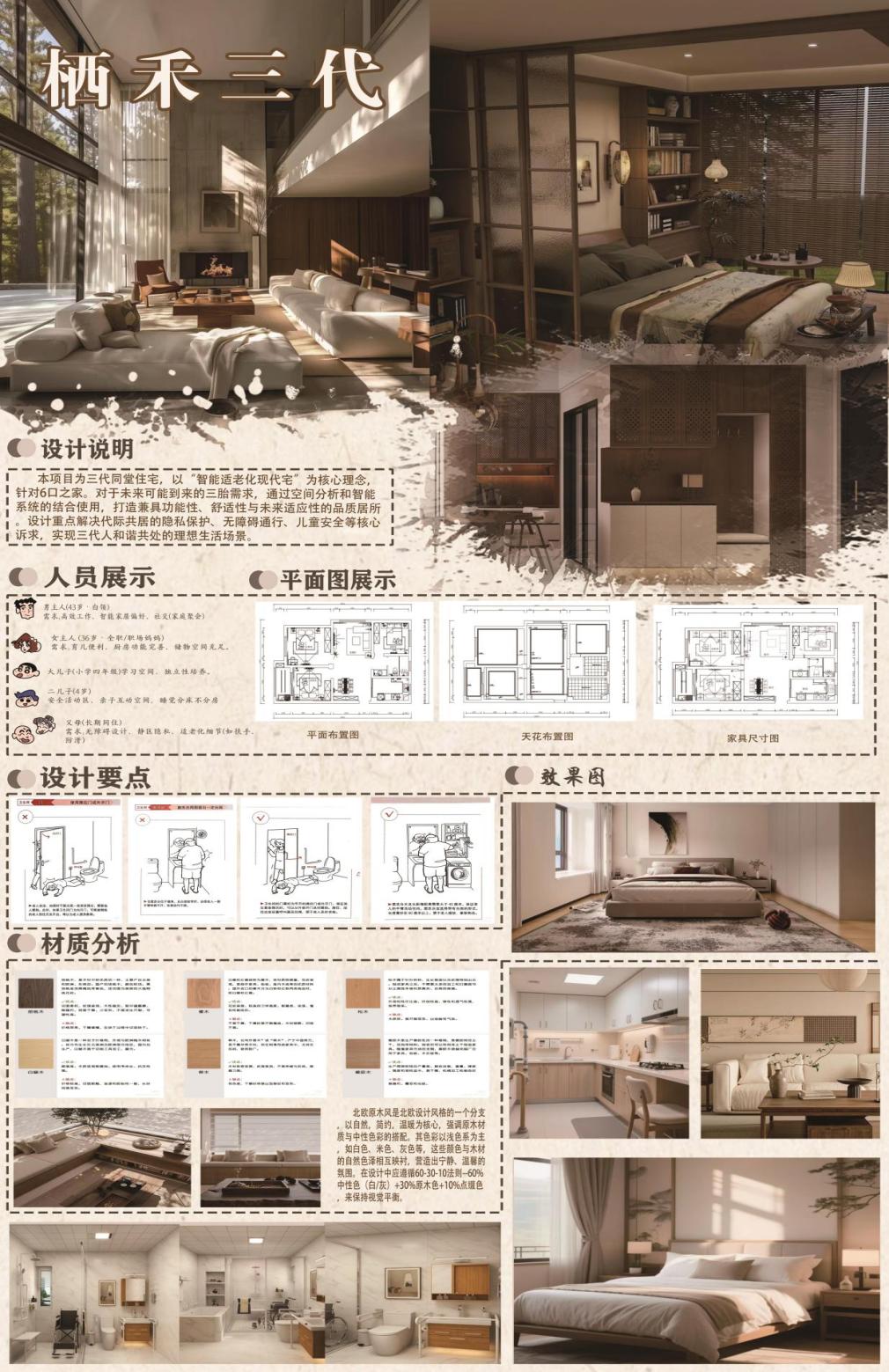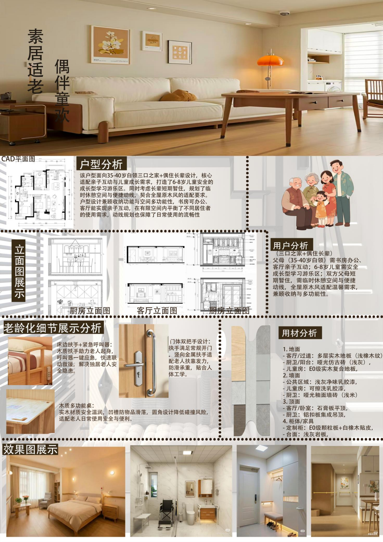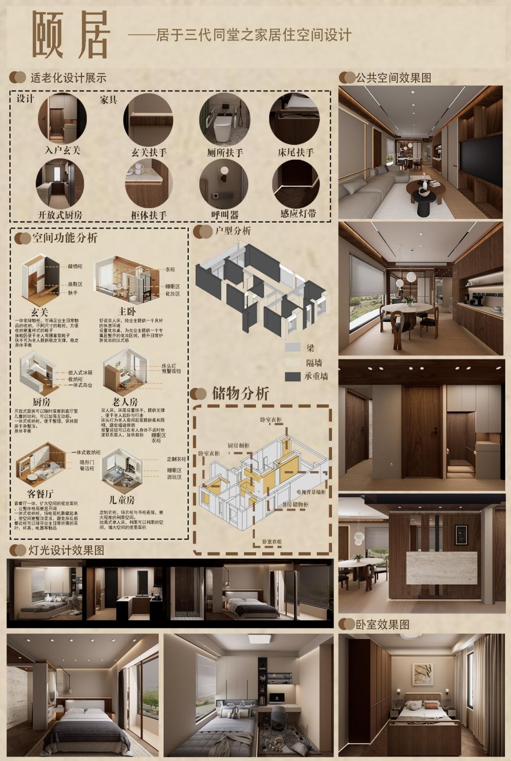 作品名称:颐养童欢——全龄友好家居方案 作者:赖希瑜 班级:2024级环境设计本科1班 指导老师:叶明英