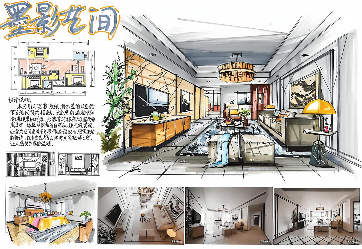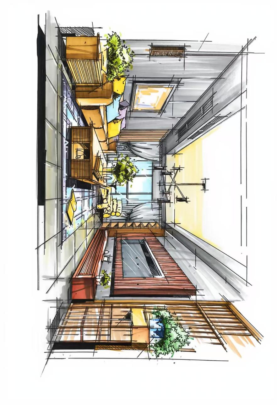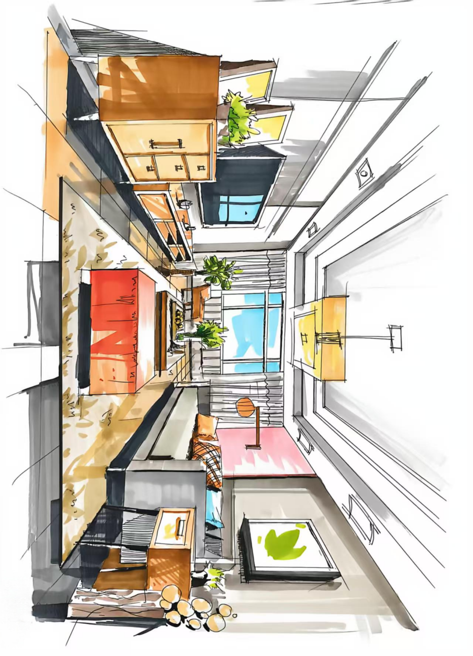 《手绘效果图表现技法》是环境设计专业的必修课,是衔接室内设计、景观设计理论与实践应用的关键课程。该课程主要研究手绘效果图的表现原理、基础技法、各类空间效果图的绘制逻辑,以及手绘在室内设计、景观设计构思、方案呈现、沟通表达中的应用,它既要求从业者具备扎实的美术造型功底和审美表达能力,又需要熟练掌握手绘的技巧方法与设计适配性,是一门融合审美艺术、设计思维与实操技能的课程。