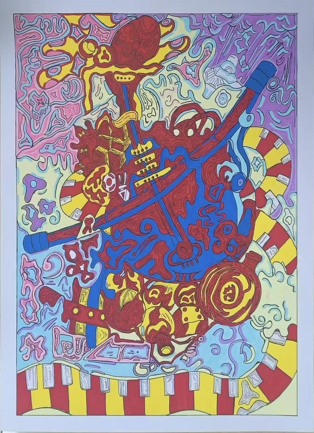 设计说明:作品以传统与现代的碰撞融合为核心设计理念,构建出充满视觉张力的奇幻场景,展现文化传承与时代活力的共生。整体以装饰性手法重构视觉语言,在繁复线条与绚丽色彩中,实现传统符号与现代审美的深度对话,赋予作品独特的艺术感染力与文化内涵。