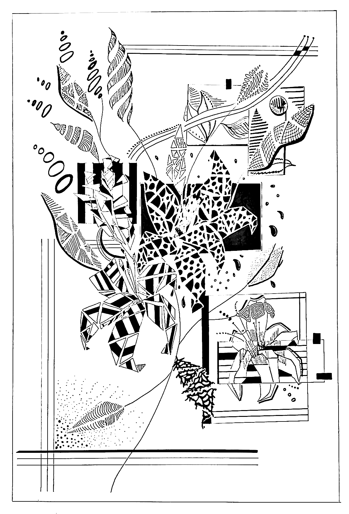 设计说明:元素与形式:以曲线、折线、几何块面与肌理符号(波浪线、斜线、网点)构成视觉主体,将植物叶片、藤蔓等形态解构为抽象的点、线、面元素,通过黑、白、灰的层次对比,营造出丰富的视觉节奏。