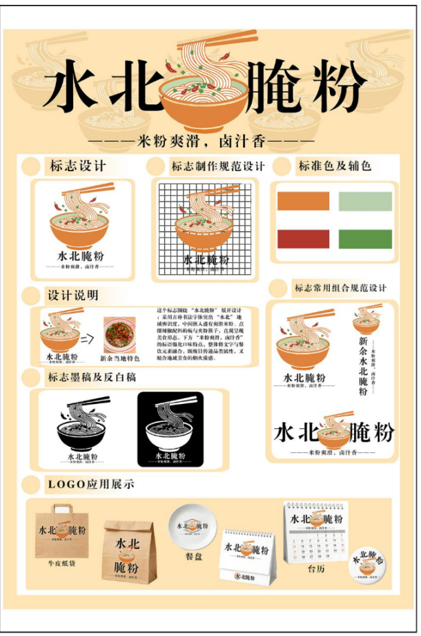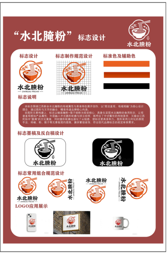 设计说明:本标志围绕江西新余水北腌粉的地域属性与美食特色展开创作,以"简洁直观,地域相融"为核心设计理念,通过图形与文字的融合,精准传递品牌核心内涵。
