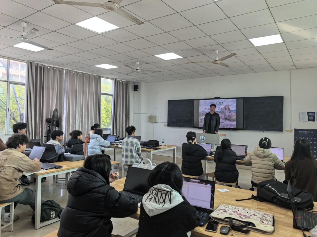 授课伊始,冯赟副书记、副校长结合当前高校毕业生就业形势,围绕环境设计专业特色,重点聚焦AI人工智能与设计行业的深度融合趋势,用翔实的数据、生动的行业案例,全面解读了当前就业市场的整体态势、设计行业发展新方向以及大学生就业的机遇与挑战。他指出,就业是最基本的民生,高校毕业生就业更是关系到经济社会发展、国家未来和青年学子成长成才的重要工作,而环境设计专业作为兼具艺术性与实用性的学科,在AI人工智能快速发展的当下,迎来了全新的发展机遇,也催生了诸多新型就业岗位,同学们要主动适应行业变革,坚定专业信心,把握AI赋能设计的就业机遇。