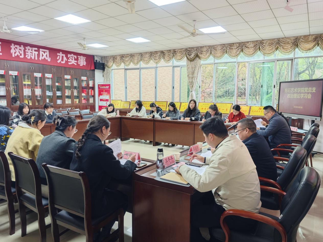 会议指出,全体党员要深刻领悟“两个确立”的决定性意义,增强“四个意识”、坚定“四个自信”、做到“两个维护”,不断提高政治判断力、政治领悟力、政治执行力。当前正值“十五五”发展开局关键节点,要切实把思想和行动统一到党中央决策部署上来,紧密结合艺术学院办学特色与发展实际,锚定高质量发展目标,立足艺术教育岗位履职尽责、担当作为,以实打实的工作成效推动艺术学院教育事业提质增效,为培养高素质艺术人才、服务文化艺术事业发展、助力中国式现代化建设贡献艺术教育力量。.