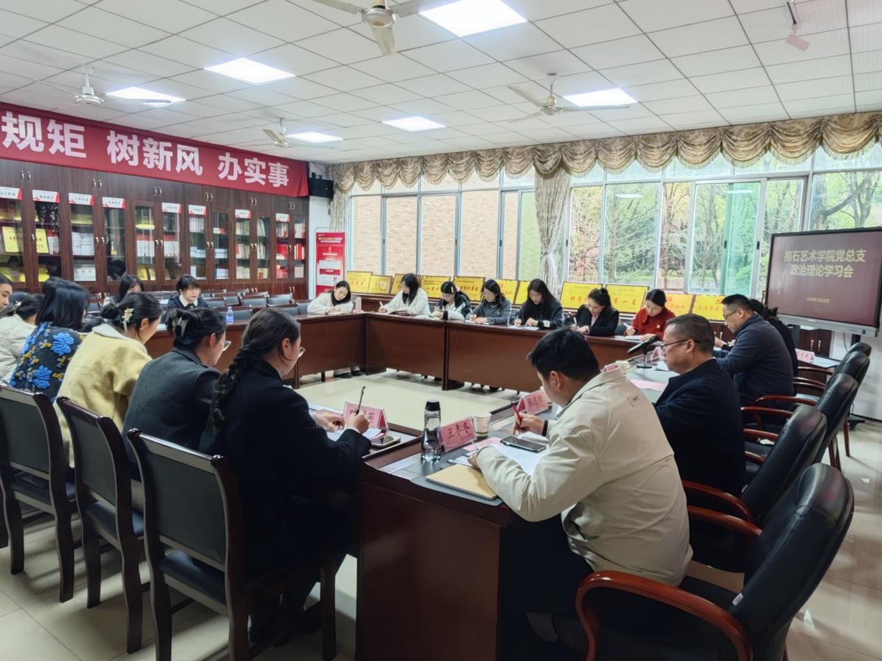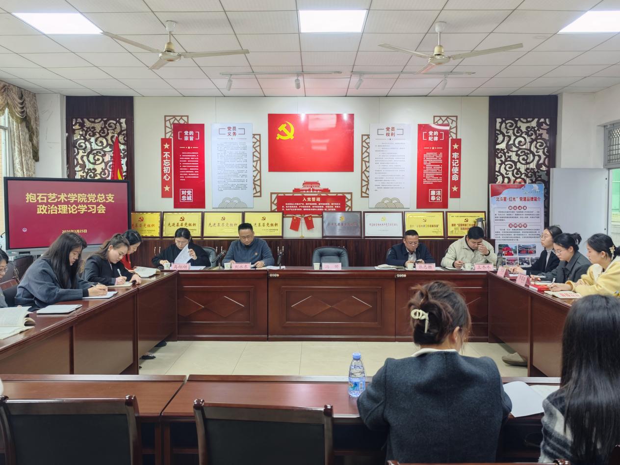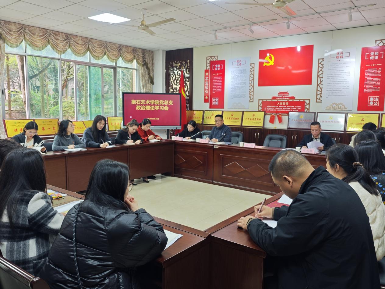 2026年3月25日下午,抱石艺术学院党总支在艺术楼202会议室召开全体党员大会,组织开展政治理论学习。党总支书记刘永东主持会议并领学,院长张志胜及全体党员参加会议。