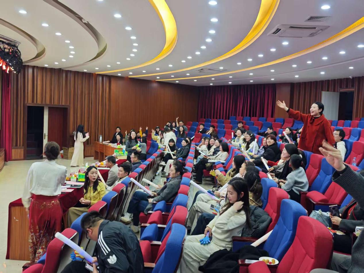 活动期间,趣味游戏互动环节妙趣横生,教师们踊跃参与、默契配合,在轻松愉悦的氛围中拉近了距离、增进了情谊;惊喜抽奖环节更是将现场气氛推向高潮,幸运教师收获满满祝福,欢声笑语回荡在演艺厅的每个角落。