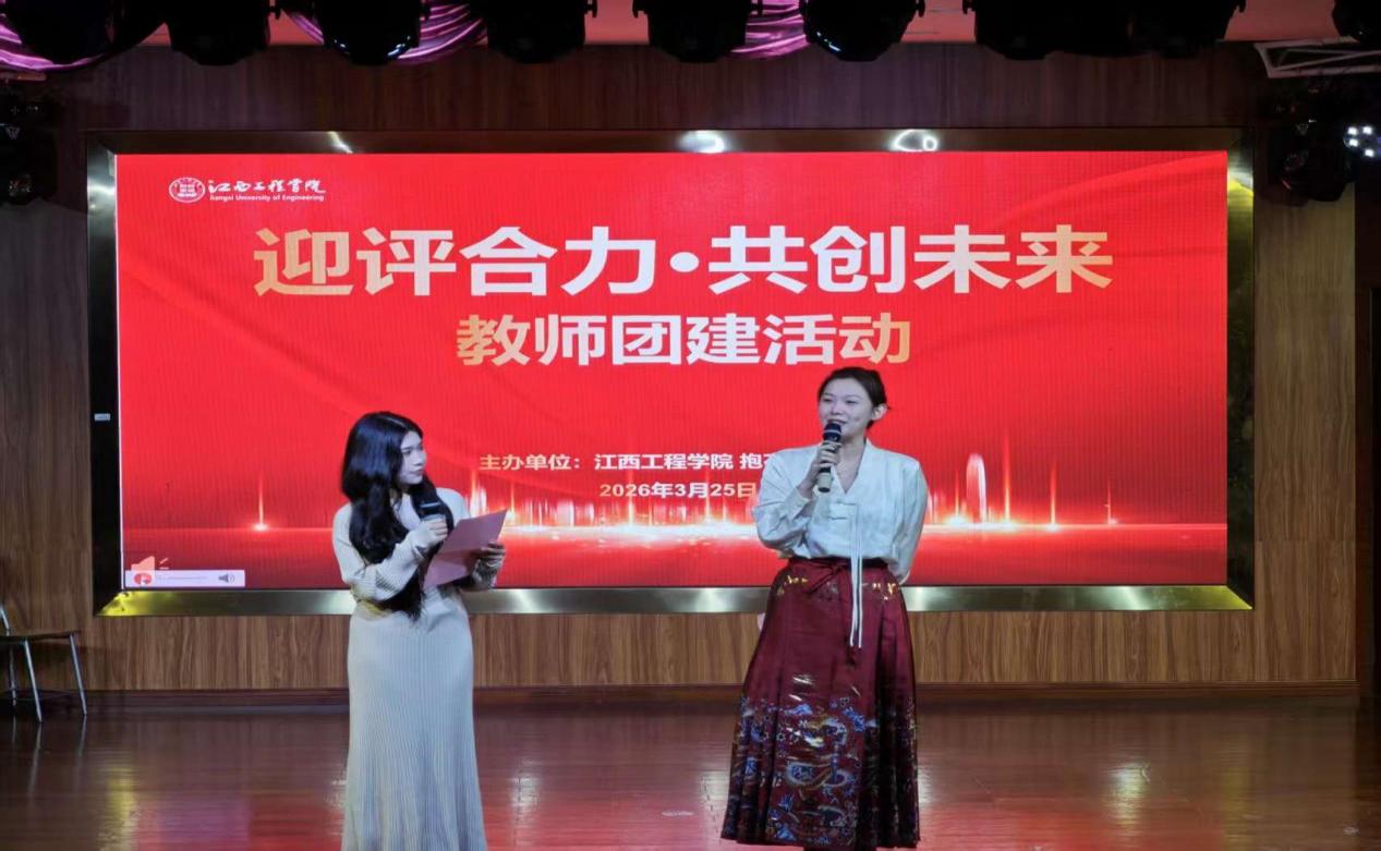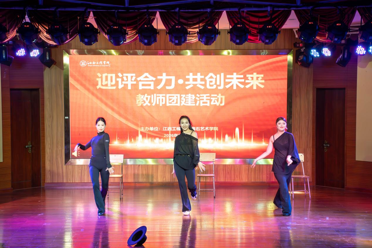 为凝聚全院教师奋进力量,助力学校本科合格评估工作,丰富教职工精神文化生活,2026年3月25日晚7时,由江西工程学院校工会主办、抱石艺术学院分工会承办的“迎评合力共创未来”教师团建活动,在文科楼4楼演艺厅温情启幕。抱石艺术学院全体教师齐聚一堂,共话发展、共叙情谊。