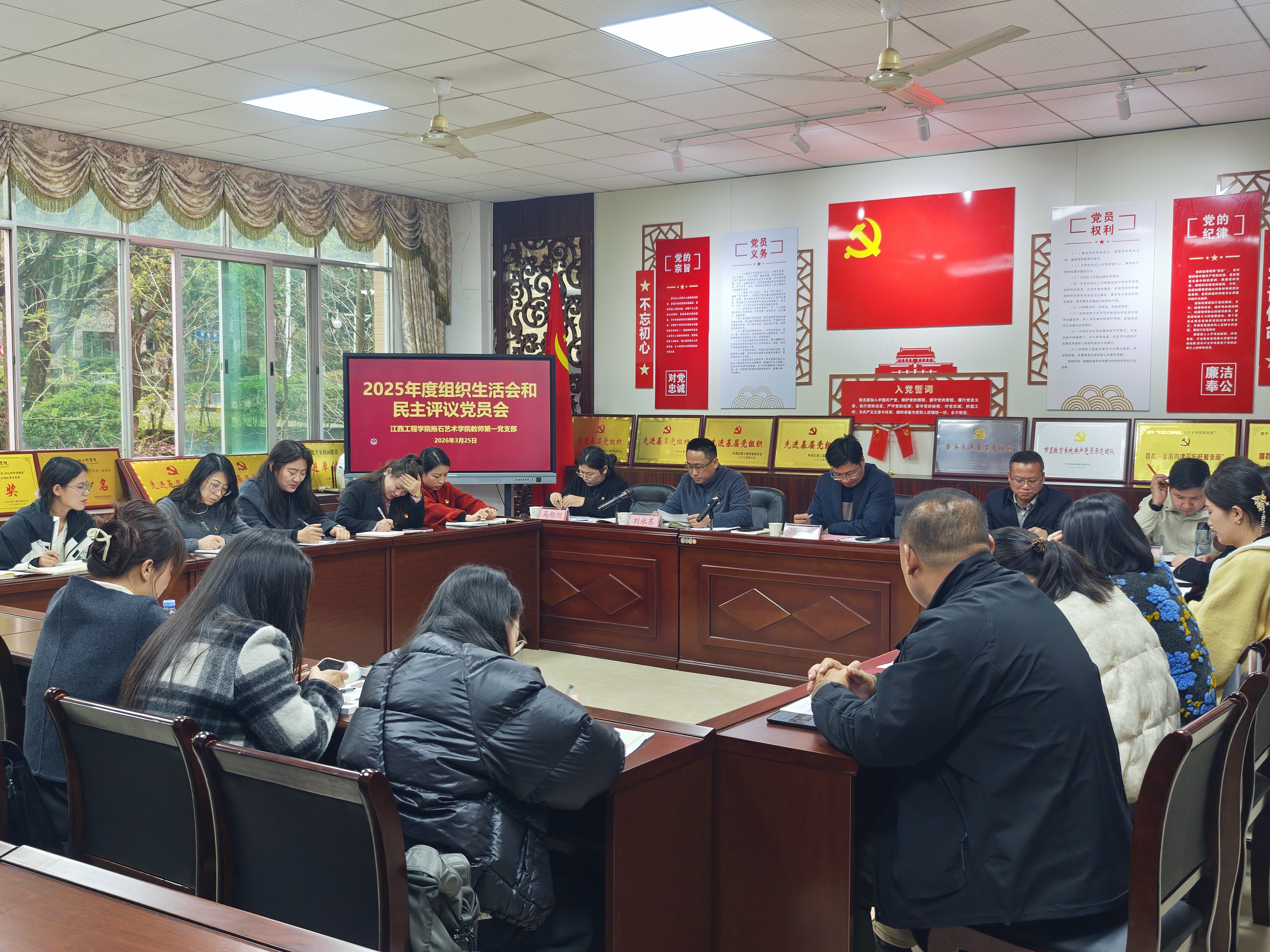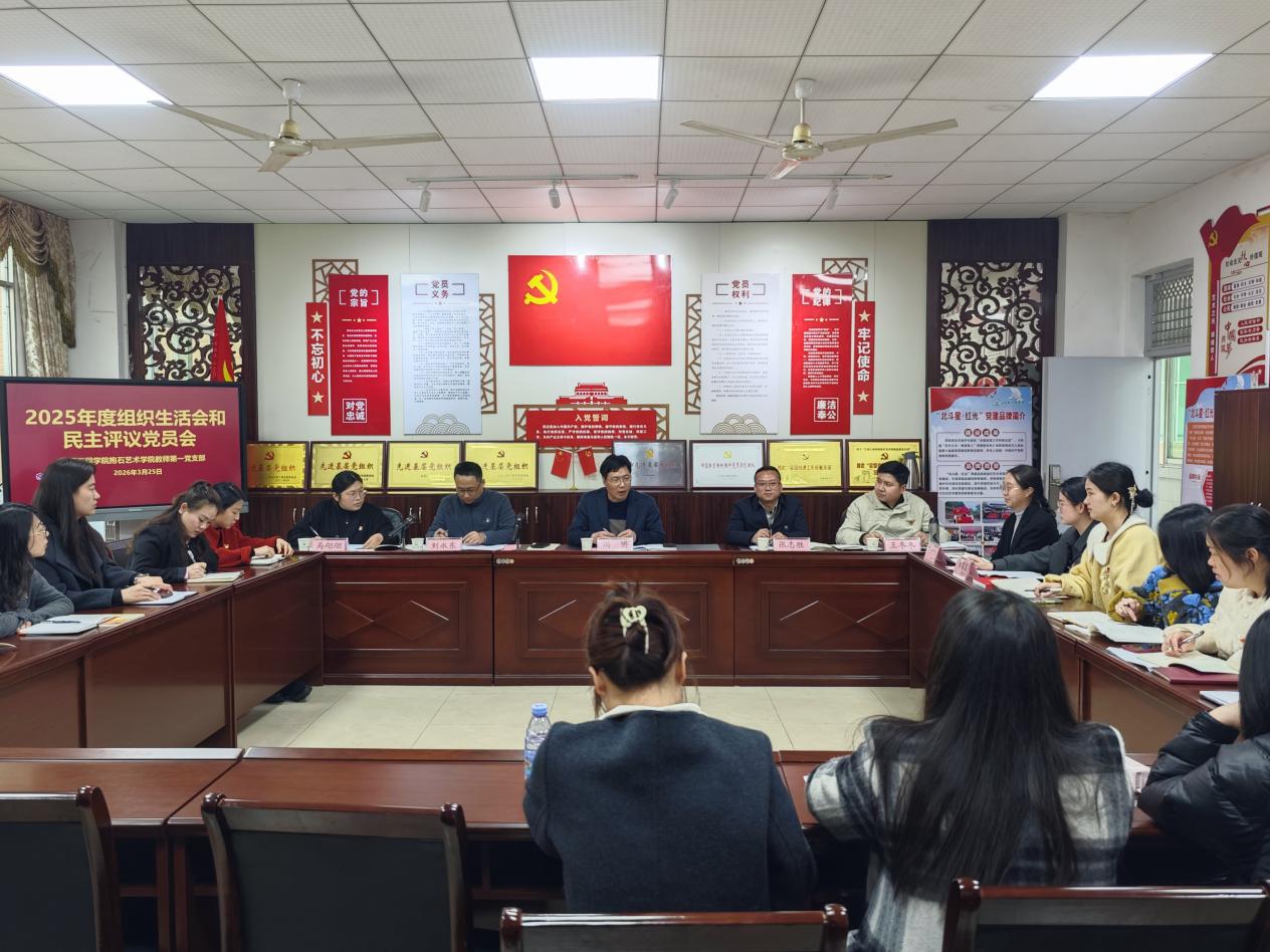 2026年3月25日下午2时,中共江西工程学院抱石艺术学院教师第一支部委员会在艺术楼202会议室召开2025年度组织生活会暨民主评议党员会议。会议由党支部书记马翩翩主持,支部全体党员参加,入党积极分子代表曹建红、张叶芳、闫文文等列席会议。