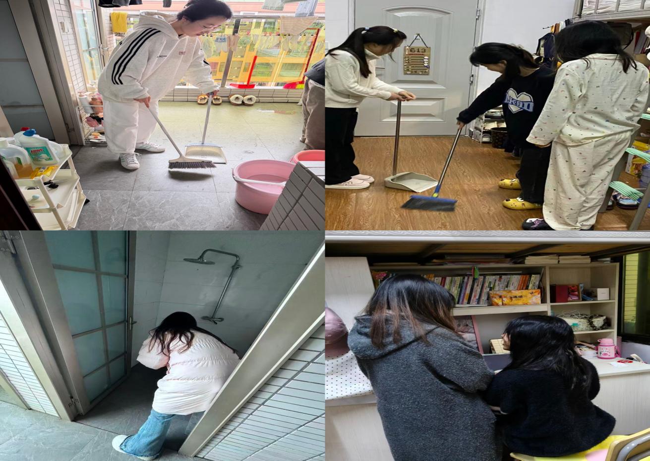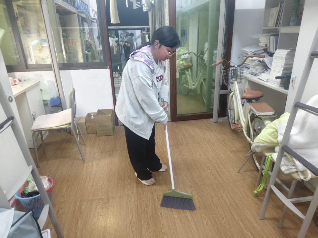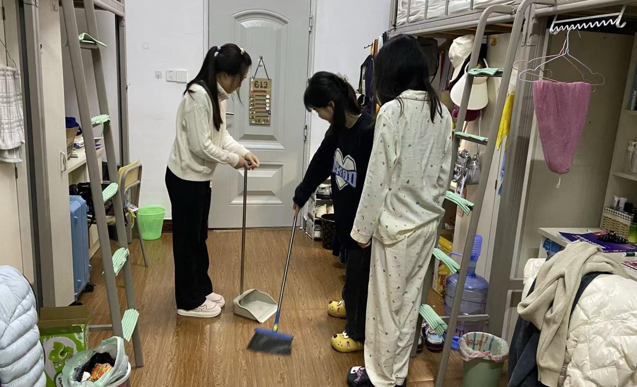 针对阳台、卫生间、床下、柜顶等卫生死角,大家开展集中攻坚清理,细致擦拭栏杆、窗台、风扇、灯开关等易忽略区域,不放过任何角落。清扫过程中,同学们分工明确、配合默契,原本杂乱的宿舍迅速焕然一新。