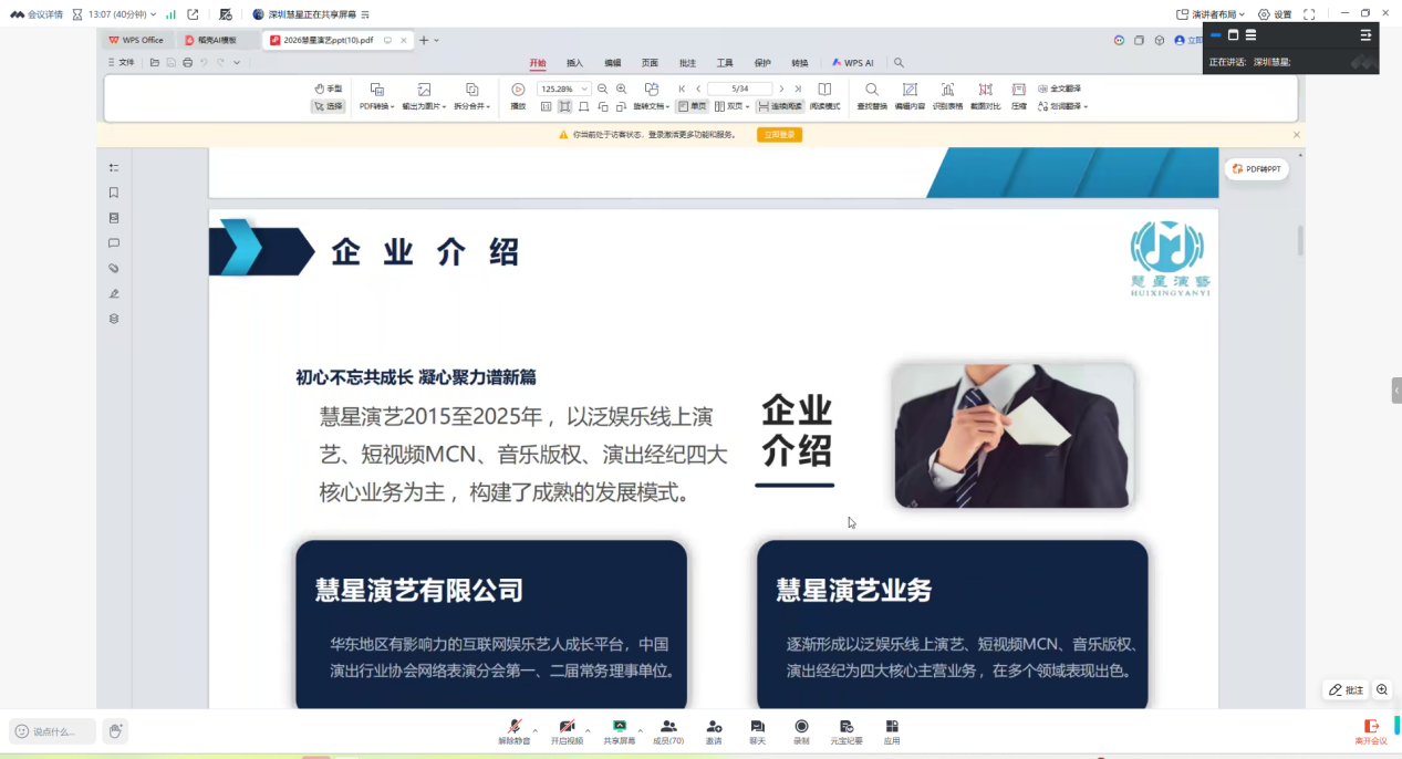 宣讲会上,深圳慧星演艺文化传媒有限公司负责人首先向参会师生介绍了企业发展历程、核心业务板块、行业影响力及企业文化,重点展示了公司在演艺策划、舞台表演、艺术教育等领域的项目成果与发展前景。随后,企业招聘负责人围绕本次招聘需求,详细解读了音乐表演、舞蹈表演、学前教育三大专业的适配岗位,包括舞台演员、艺术指导、少儿艺术培训师、节目编导等,清晰说明各岗位的任职要求、工作内容、职业发展路径及薪酬福利体系。企业方特别强调,高度重视艺术人才的培养与成长,将为入职学子提供系统化岗前培训、丰富的实践项目与广阔的晋升空间。