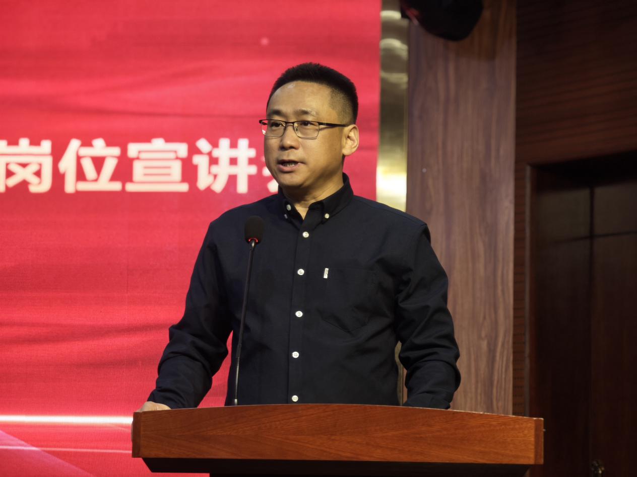 宣讲环节尾声,江西腾飞网络技术有限公司董事长伍总上台讲话。作为深耕电商行业多年的创业者,伍小军结合自身创业经历和企业发展历程,全面解读了当前直播电商行业的发展趋势、市场需求及职业发展前景。他重点介绍了公司与江西工程学院及抱石艺术学院的深度合作成果,提及公司近年来累计投资近百万元打造校企合作实习基地,已累计培训学生4000余名,助力众多学子实现就业创业的亮眼成绩。