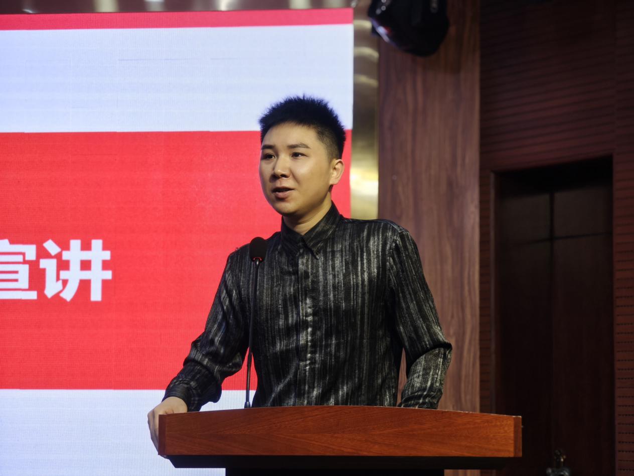 随后,江西腾飞网络技术有限公司项目负责人黄捷上台开展宣讲。黄宣讲结合自身丰富的直播行业实操经验,聚焦直播带货实战技能,围绕直播话术设计、镜头表现力、产品卖点提炼、直播场控技巧等核心内容,进行了细致讲解。他结合艺术专业学生的特点,重点分享了如何将审美创意融入直播场景搭建、产品展示等环节,通过真实直播案例拆解,直观呈现了从新手入门到熟练上手的实操路径,为在场女生提供了可落地、可借鉴的实战指导。同时,他还解答了同学们关于直播入门门槛、技能提升方法等疑问,干货满满,获得了现场同学们的阵阵掌声。