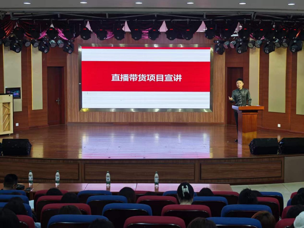 为深化产教融合,精准对接数字经济时代直播电商产业发展需求,助力全院女生拓宽职业发展路径,2026年4月12日晚7时,抱石艺术学院在学院演艺厅成功举办江西腾飞网络技术有限公司直播带货宣讲会。学院党总支书记刘永东、全体辅导员出席活动,全院女生齐聚现场,认真聆听宣讲,共探直播行业新机遇、共绘职业发展新蓝图。