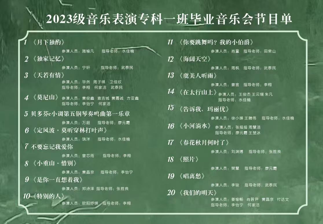 夜幕落幕,乐章留声。愿2023级音乐表演专科1班的毕业生们带着音乐赋予的力量,以梦为马,不负韶华,在人生的新征程上奏响属于自己的华彩乐章!