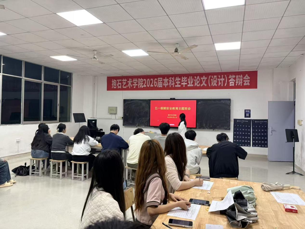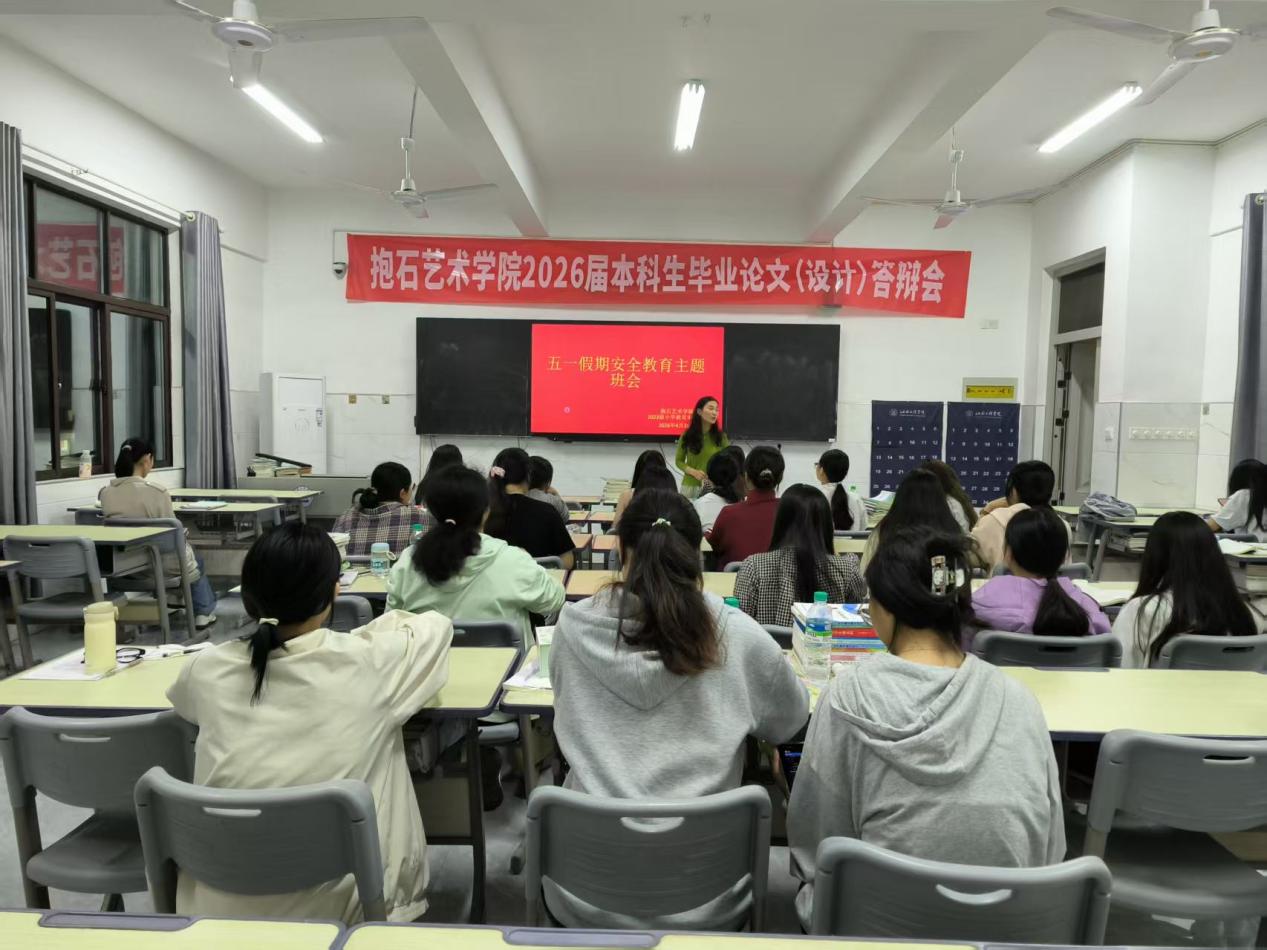 为切实做好五一劳动节假期学生安全管理工作,进一步强化学生安全防范意识,提升自我保护能力,保障全院学生度过一个平安、文明、充实的假期,2026年4月27日晚7时,抱石艺术学院组织各班级开展五一假期安全教育主题班会,本次班会由各班级辅导员主持,全院学生全员参与。